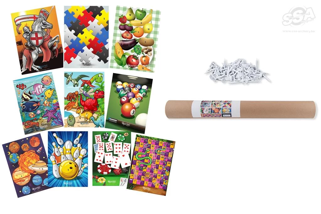 These target faces come in packs of 10, and include a pack of 50 target pins.