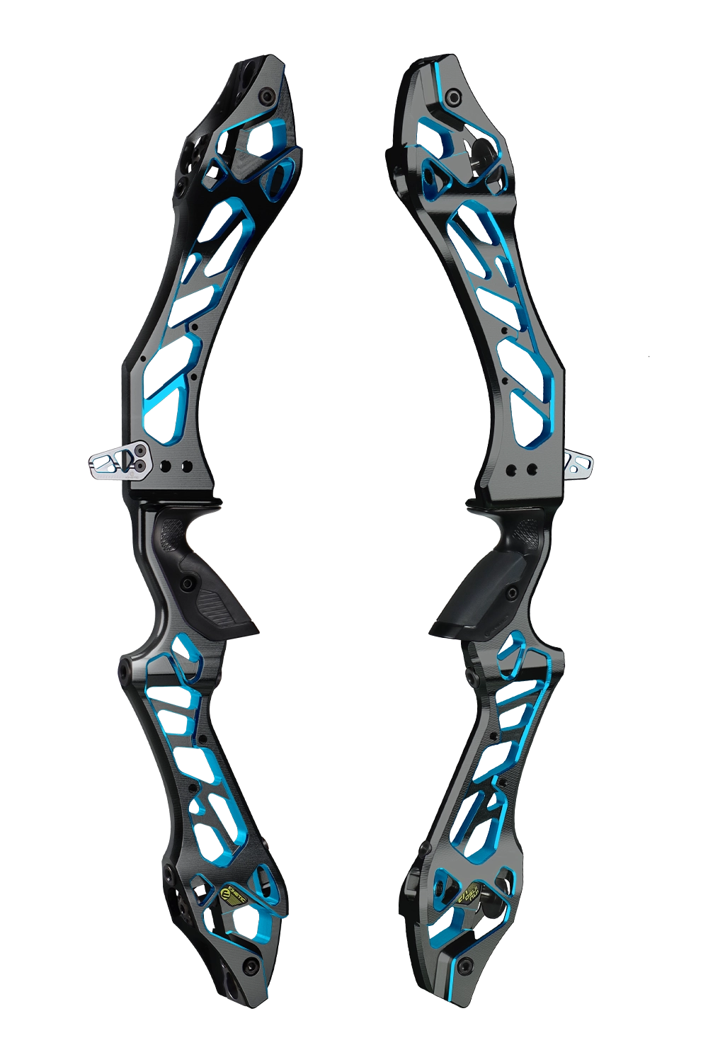 This is a very precise CNC recurve riser from Kinetic. It has been geometrically designed to minimise vibration while maintaining a stable stance and dynamic feel during shooting.